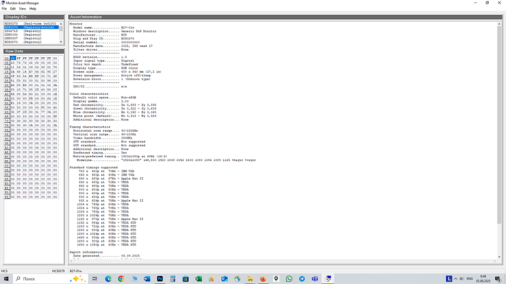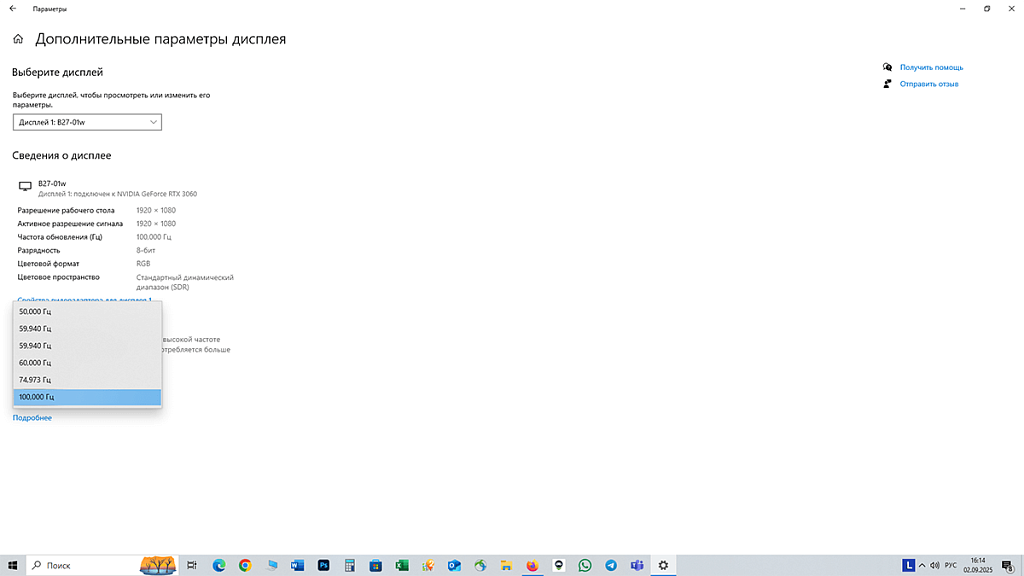 Максимальная частота обновления составляет 100 Гц, и она доступна в том числе при максимальном для рассматриваемого монитора разрешении. Разрядность матрицы – 8 бит (16,7 млн цветов). К сожалению, точное название матрицы мне неизвестно, как не знаю я и способа попасть в сервисное (инженерное) меню монитора для получения более детальной информации.