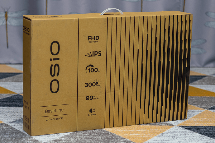 OSIO BaseLine B27-01w упакован в картонную коробку с удобной ручной для переноски и надёжно защищён большими вставками из пенопласта.