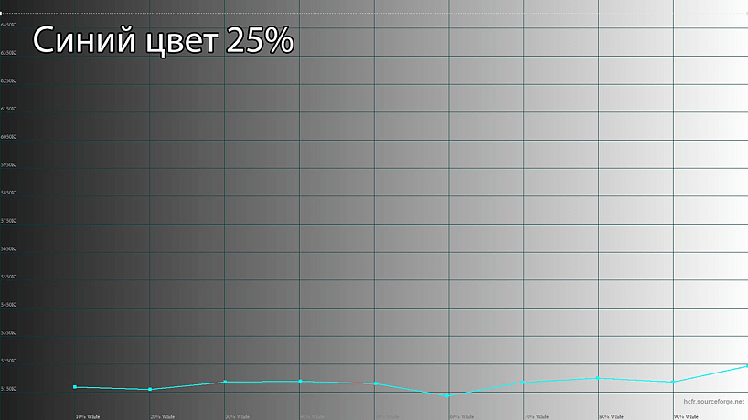 У режима «Синий цвет» 4 варианта – они называются 25, 50, 75 и 100%. Значение меняется от 5200 до 4500K, и с учётом того, что многие настройки блокируется, включая яркость подсветки, большого смысла в использовании этого режима я не вижу.