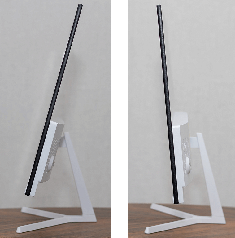 Возможна регулировка наклона экрана в пределах примерно от -5 до +15 градусов, а вот настроить по высоте монитор не получится, как нет у него и портретного режима работы.
