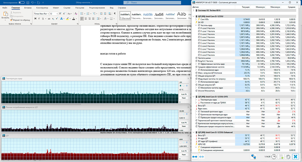 Во время работы с документами вентилятор и вовсе не раскручивается выше 1500-2000 оборотов. Тут обязательно стоит уточнить, что как таковой едва заметный шум начинает появляться при 4000 оборотах и выше, при условии, что вы находитесь в полной тишине, а неттоп стоит рядом с вами на столе.