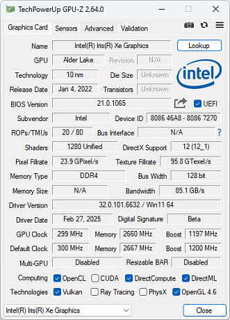 За графику отвечает интегрированное в процессор графическое ядро Intel Iris Xe c 80 вычислительными блоками EUs и эффективной рабочей частотой 1200 МГц. На много, в плане игр с Iris Xe, рассчитать не стоит, но и скоротать время вполне удастся, в чем вы сами и убедитесь немного позже.