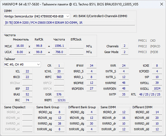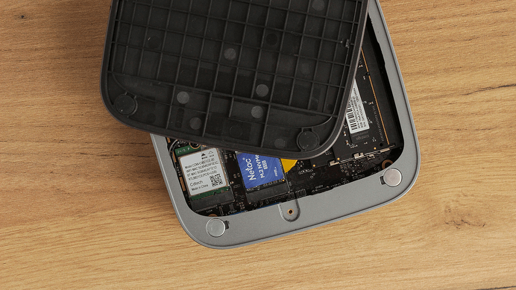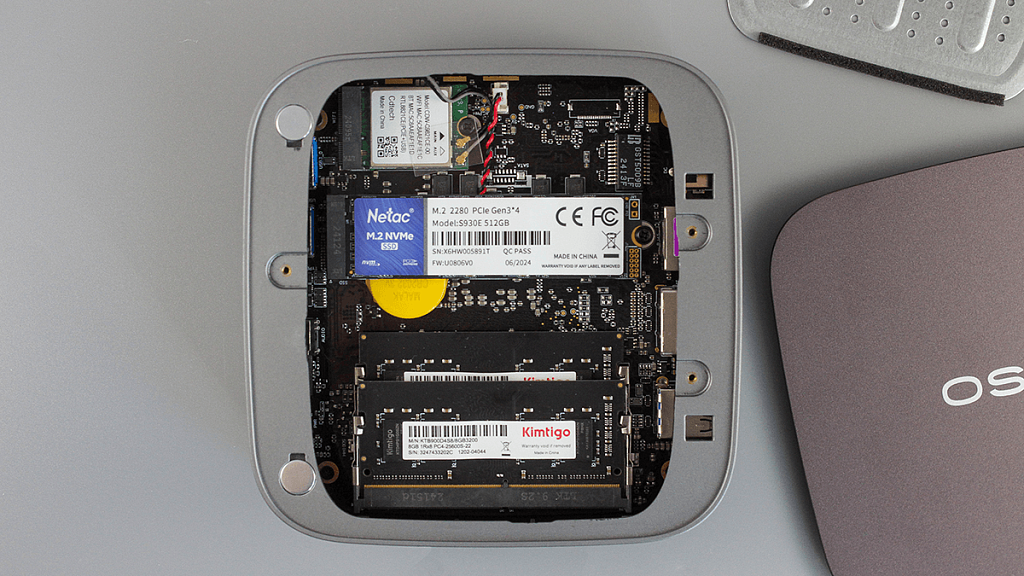 Что касается оперативной памяти, то несмотря на наличие у процессора поддержки стандарта DDR5, данный неттоп оснащается памятью DDR4 c эффективной рабочей частотой 3200 МГц и таймингами 22-22-22-54. Объем оперативной памяти, как уже говорилось, равен 16 Гб.