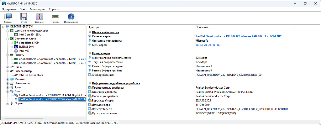 За беспроводную связь отвечает контроллер Realtek RTL8821CE c поддержкой Wi-Fi 5 (802.11ac) и Bluetooth 4.2.