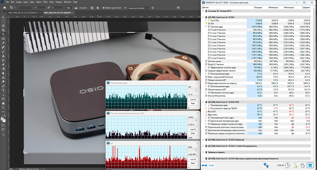 Так например в браузере обороты вентилятора едва будут подниматься выше 2500-3000, обработка фото в Adobe Photoshop 2025 периодически поднимает их до 6000 тысяч, при этом даже в таких случаях говорить о каком-либо серьёзном дискомфорте не приходиться.