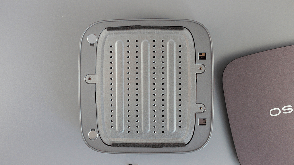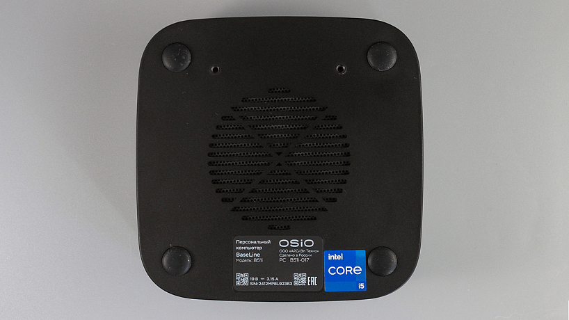 Выглядит неттоп OSiO BaseLine B51i достаточно строго, но интересно, сам корпус полностью выполнен из пластика. Его размеры составляют 126 × 126 мм, при этом высота устройства всего 42 мм. Что до веса, то он равен 450 грамм.