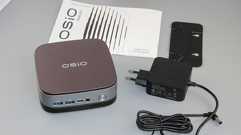Внутри коробки все аккуратно разложено по отсекам, а для дополнительной защиты мини ПК находится в полиэтиленовом пакете с надписью "Привет! Я твой OSiO", это было достаточно приятно.