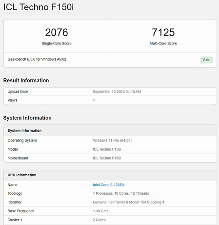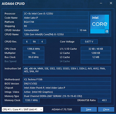 Intel Core i5-1235U - это мобильный процессор среднего уровня, ориентированный на тонкие ноутбуки. Он построен на архитектуре Alder Lake, производится по 10-нм техпроцессу и несет в себе 2 ядра Golden Cove (P-Cores) и 8 ядер Gracemont (E-Cores). Два производительных ядра поддерживают технологию Hyper-Threading, а значит, фактически, процессор способен обрабатывать до 12 потоков данных.