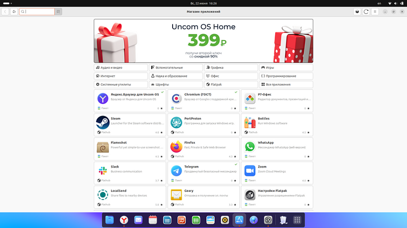 Операционная система максимально дружелюбна для любого пользователя и имеет огромное количество программ на все случаи жизни. Скачать их можно как из встроенного магазина приложений, так и установить вручную. Тут вы найдете и полноценный офис с Word и Excel, различные блокноты, программы для просмотра видео, к примеру стандартный VLC и множество любимых программ для каждодневного использования. Для продвинутых пользователей есть возможность установки программ для Windows при помощи эмулятора Wine или Bottles. С помощью этого эмулятора я установил MS Office 2019, старенький Photoshop, Aida64, Movavi Video Editor 14 plus.