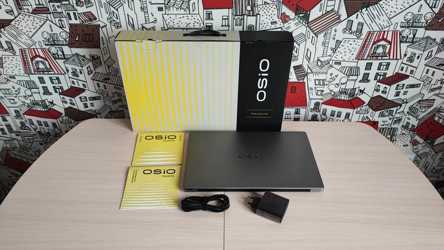 Начну с того, что хотелось бы пару слов сказать об OSIO. Это российский бренд, который более 30 лет специализируется на разработке и производстве IT оборудования. У них собственное производство на заводе под Казанью, поэтому тут на мой взгляд можно быть уверенным в том, что если вам понадобятся отремонтировать ваш ноутбук, то проблем с запчастями не будет. Здорово, что в наше время на рынке есть компании, которые занимаются производством IT продукции на территории нашей страны. Но давайте все же поговорим про саму модель. Мне понравилось, что ноутбук не тяжелый и весит всего 1.7 кг. Корпус изготовлен из алюминиевого сплава и имеет обтекаемые грани. Да и сам он довольно тонкий. Соотношение сторон 16:9, размер экрана 15,6 дюймов.