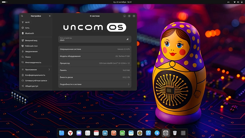 Переходим к самому любопытному — операционной системе. Сначала немножко теории: Uncom OS от российских разработчиков создана на базе Linux. В ее основе лежит ядро популярной и известной многим Ubuntu. Есть и частичные заимствования функционала из других сборок, например, Mint.