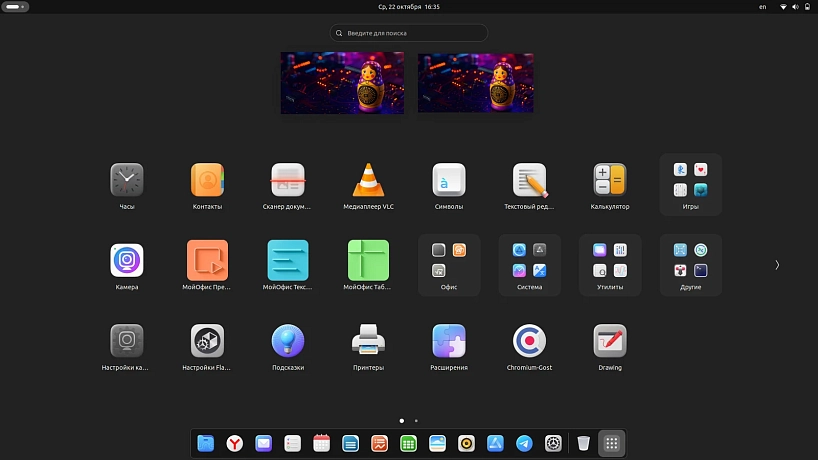 Визуально Uncom OS — это своеобразный микс Windows и macOS. С явным перекосом в сторону последней. Влияние «яблочной» системы легко распознать как минимум по нижней панели приложений (Dock) и верхней строке меню.