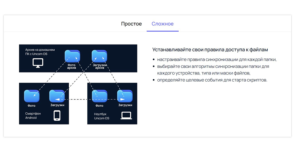 А ещё в UNCOM OS есть сервис UNC Connect. Это программа для синхронизации файлов между устройствами: компьютерами, смартфонами, планшетами.