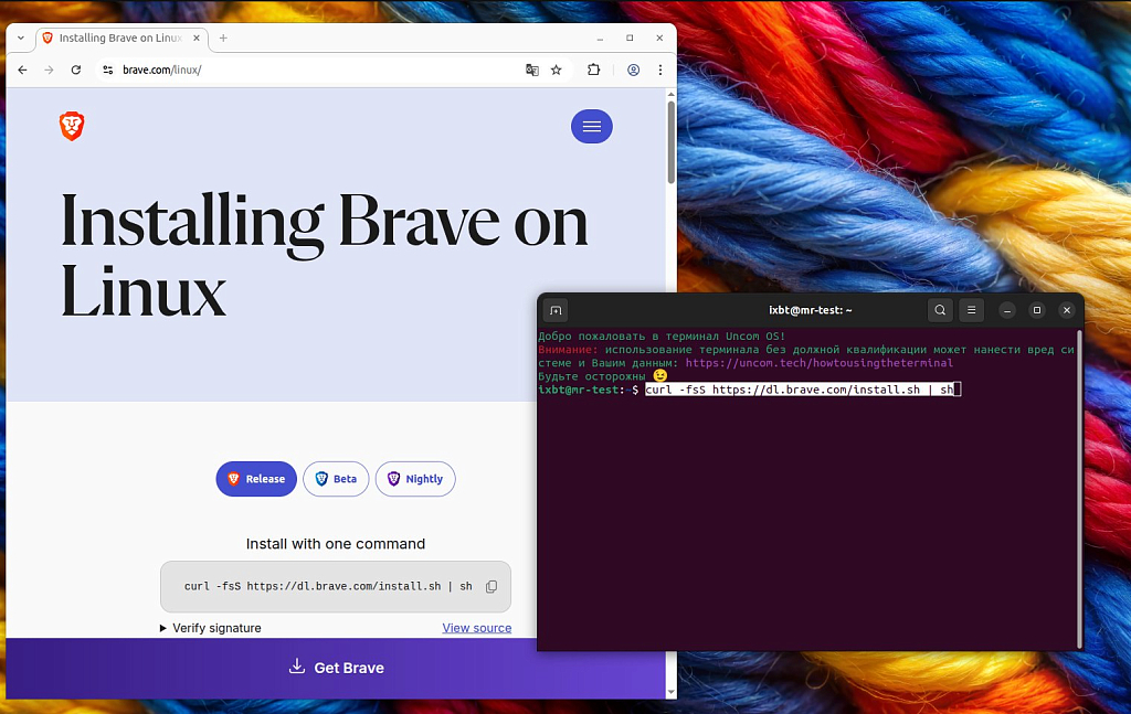 Установка программ не из магазина приложений. На Linux-системе установка происходит через ввод команды в терминале. Звучит страшно, но в реальности просто на странице загрузки не выложен файл, а указана команда, которую надо скопировать и вставить в терминал.