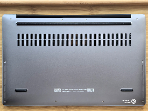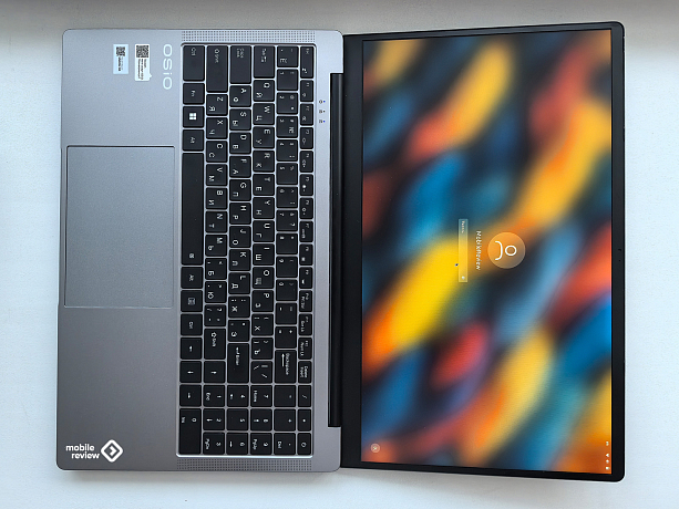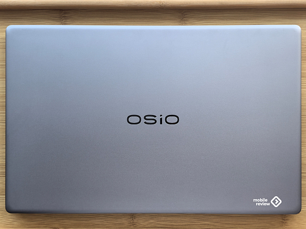 У OSiO FocusLine F150i классический вид современного делового ноутбука. Тут тонкий корпус из металла. На крышке аккуратный брендинг. Пожалуй, наиболее интересный момент в дизайне — это покрытие, которое нанесено на металл. На нем остаются отпечатки рук, но они неприметны. Давайте рассмотрим ноутбук подробно.