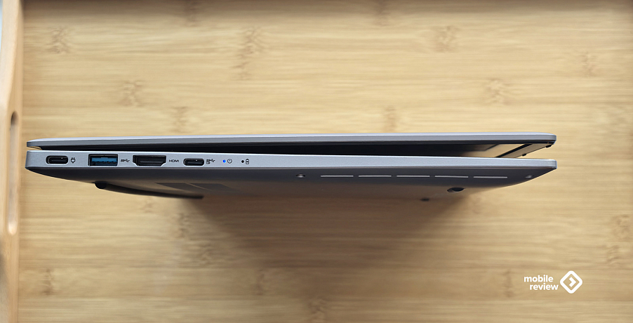 - С левой стороны — два порта Type -C, один из которых предназначен для питания, а ещё HDMI и классический USB Type-A.