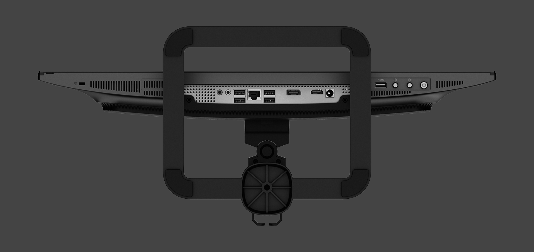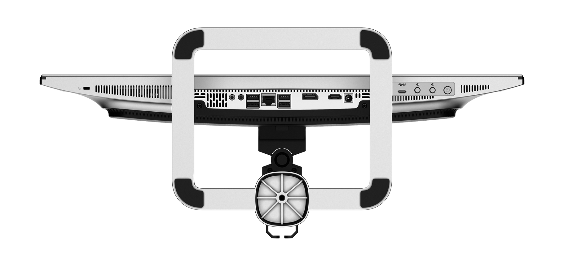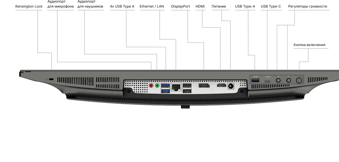 Основные разъемы используемые каждый день, для удобства расположены на задней части монитора и направлены вниз для большей эргономичности.